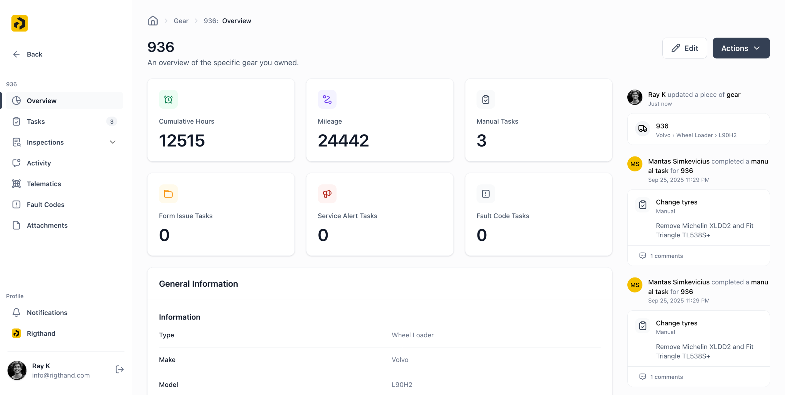 Every data point — engine hours, fuel burn, oil temperature, hydraulic pressure, tire wear — flows straight into the system. When any reading crosses its limit, new service and check-up tasks are created automatically — stopping problems before they become breakdowns.